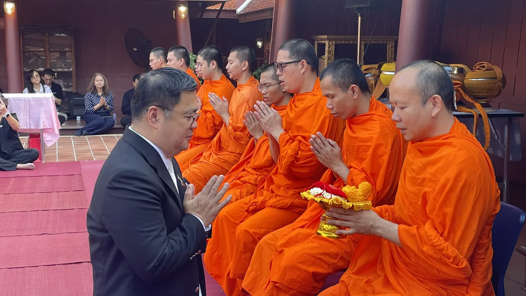 ผู้ช่วยเจ้าอาวาสวัดสระเกศ พร้อมด้วยพระภิกษุรวม จำนวน ๙ รูป จาก วัดสระเกศ เพื่อเป็นการสืบสานประเพณีและ พิธีการทางพระพุทธศาสนา พร้อมทั้งกล่าวธรรมกถา โดยมีนิสิตจุฬาฯ, ชาวจุฬาฯ และพุทธศาสนิกชน ร่วมกิจกรรมในครั้งนี้