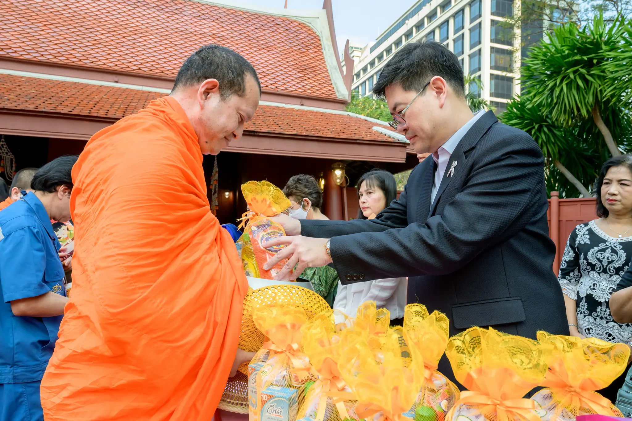 กิจกรรมตักบาตร”บุญสุนทาน” ณ เรือนไทยจุฬาฯ ศาสตราจารย์ ดร.วิเลิศ ภูริวัชร (อธิการบดี) พร้อมด้วยผู้บริหารมหาวิทยาลัย ร่วมกิจกรรม “บุญสุนทาน” ณ เรือนไทย จุฬาฯ ในวันที่ ๓๐ มกราคม ๒๕๖๙