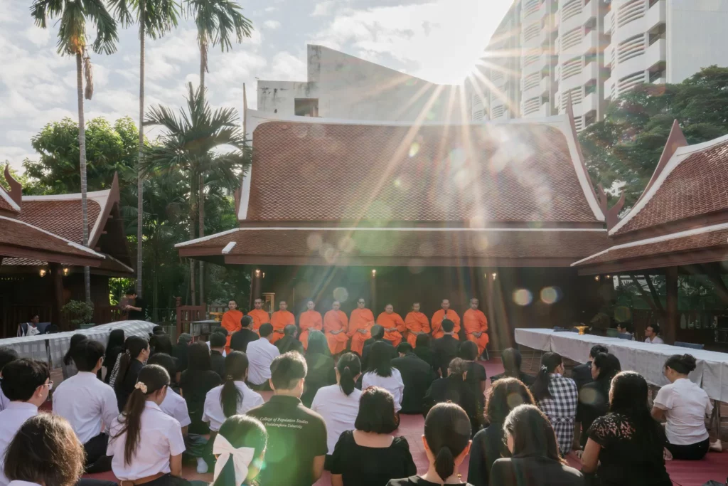 โดยได้รับความเมตตาจากพระกาญจน์ สุญาณิกโพธิ เปรียญ พร้อมด้วยพระภิกษุรวม จำนวน ๑๐ รูป จาก วัดสระเกศ เพื่อเป็นการสืบสานประเพณีและ พิธีการทางพระพุทธศาสนา พร้อมทั้งกล่าวธรรมกถา เพื่อน้อมอุทิศถวายเป็นพระราชกุศลแด่สมเด็จพระนางเจ้าสิริกิติ์ พระบรมราชินีนาถ พระบรมราชชนนีพันปีหลวง โดยมีนิสิตจุฬาฯ, นักเรียนจากโรงเรียนสาธิตจุฬาลงกรณ์มหาวิทยาลัย ฝ่ายประถม, ชาวจุฬาฯ และพุทธศาสนิกชน ร่วมกิจกรรมในครั้งนี้เป็นจำนวนมาก