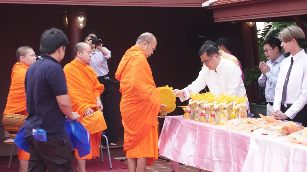 โดยได้รับความเมตตาจากพระครูนันทกิตติคุณ ผู้ช่วยเจ้าอาวาสและพระพิธีธรรมหลวง พร้อมด้วยพระภิกษุรวม จำนวน ๙ รูป จาก วัดสระเกศ เพื่อเป็นการสืบสานประเพณีและ พิธีการทางพระพุทธศาสนา พร้อมทั้งกล่าวสัมโมทนียกถา และให้พร โดยมีชาวจุฬาฯ และพุทธศาสนิกชน ร่วมกิจกรรมในครั้งนี้เป็นจำนวนมาก