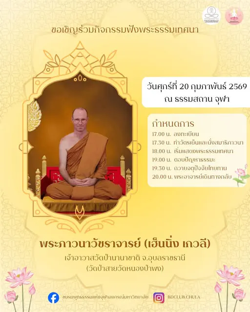 เวลา 18.00 น. เริ่มแสดงพระธรรมเทศนา
