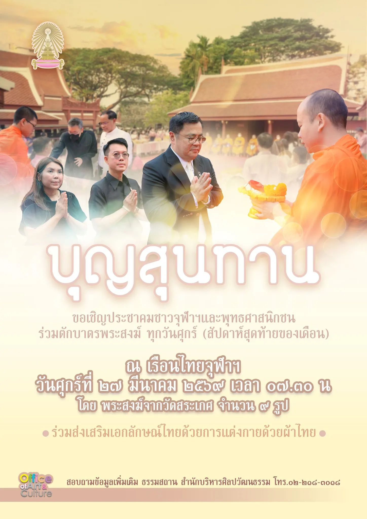 กิจกรรมตักบาตร ณ เรือนไทย จุฬาฯ (ทุกศุกร์สุดท้ายของเดือน)
