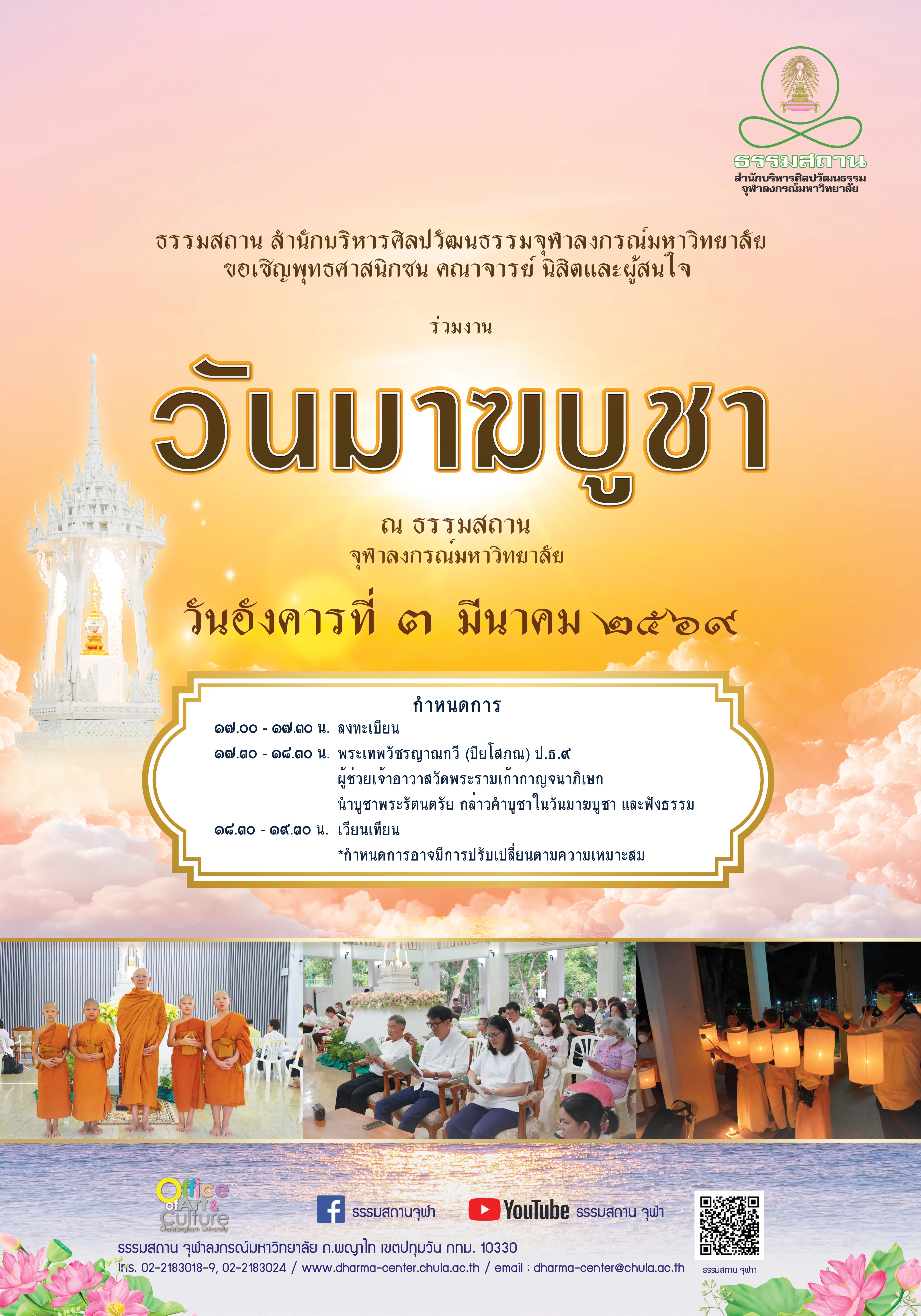 ขอเชิญพุทธศาสนิกชน คณาจารย์ นิสิตและผู้สนใจ ร่วมงานวันมาฆบูชา