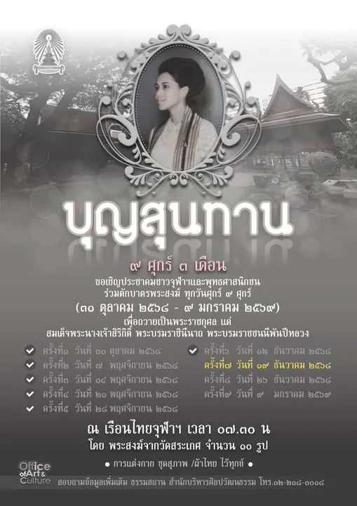 กิจกรรมตักบาตรถวายเป็นพระราชกุศล ๙ ศุกร์ ๓ เดือน เพื่อถวายเป็นพระราชกุศล แด่สมเด็จพระนางเจ้าสิริกิติ์ พระบรมราชินีนาถ พระบรมราชชนนีพันปีหลวง